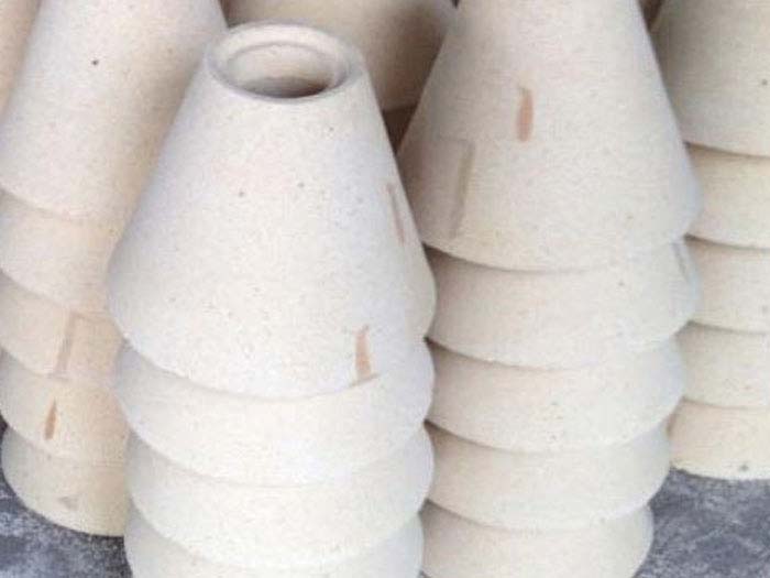 不管是整體式,還是分體式袖磚,出鋼口袖磚一般外形為圓形,內孔均是通孔的圓形結構,內孔大小根據出鋼時間確定,壁厚一般為50~  100mm,孔的形狀分為直通形和喇叭形。實驗證明,喇叭型內孔且入口形狀為圓形的出鋼口出鋼速度較大,這就意味著鋼水與出鋼口之間的干擾減弱,水流比較平穩,出鋼口的圓形入口縮短了出鋼時間。