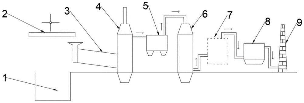 4-二燃室;5-鍋爐;6-急冷塔;7-脫酸塔;8-除塵;9-煙囪