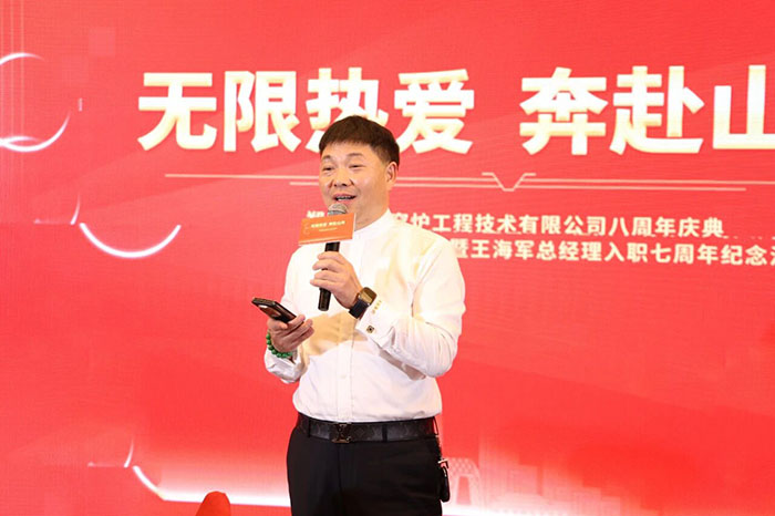 緊接著,集團(tuán)總經(jīng)理王海軍發(fā)表了精彩致辭。王總以真摯的情感,分享了與榮盛風(fēng)雨同舟七年的心路歷程。他感慨,七年時(shí)光,見(jiàn)證了公司的跨越式發(fā)展,也見(jiàn)證了團(tuán)隊(duì)的成長(zhǎng)與凝聚。每一項(xiàng)技術(shù)的攻堅(jiān)克難,每一個(gè)項(xiàng)目的交付,都是全體榮盛人并肩作戰(zhàn)、共赴山海的生動(dòng)寫照。王總表示,未來(lái)將繼續(xù)與全體家人一道,以更加堅(jiān)定的信念與飽滿的熱情,迎接挑戰(zhàn),再創(chuàng)輝煌。